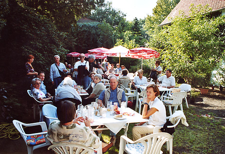 Der auf der Rückseite des Gebäudes liegende romantische Garten bietet ausreichend Platz zur Einkehr und zum Feiern. Bei schönem Wetter lädt der gemütliche Platz im Grünen zum Begrüßungsaperitif bei Feierlichkeiten wie auch zu Kaffee und Kuchen ein.